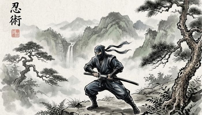 "style": "vertical Japanese characters (ninjutsu theme)"