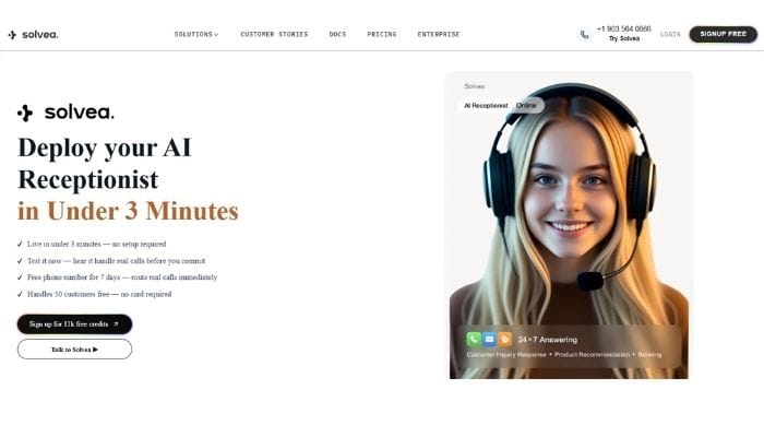 Solvea is an AI receptionist that helps small teams answer phоne calls, handle live chat, and work from a clear knowledge base without code. You describe what you need in plain words, connect the tools you already use, then let it handle common questions, bookings, and follow-ups. That matters when your team is small and every missed message can turn into a lost sаle.