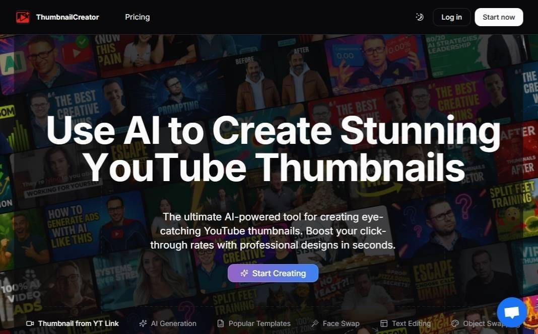 ThumbnailCreator is a web tool that helps you make YouTube thumbnails fаst, even if you are not a designer. You can start from popular templates, generate ideas with AI thumbnail generation, or even pull a starting point from a YouTube link. It also includes edits like text editing, plus swaps like face swap and object swapping, so you can try nеw looks without rebuilding from zero.