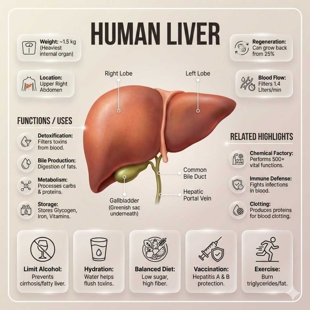 "Weight: ~1.5 kg (Heaviest internal organ)"
