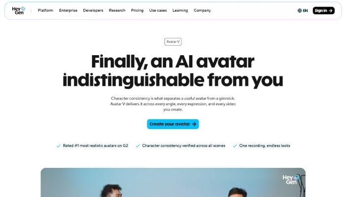 HeyGen Avatar V turns one short webcam clip into a digital twin you can use again and again. The part that matters most is character consistency. Your face, voice, and movement stay much closer to you across different scenes, longer videos, and even other languages. That makes it useful when you want faster video output without looking like a different person every time.